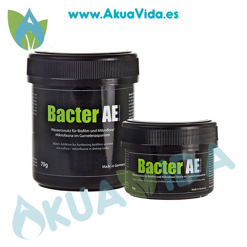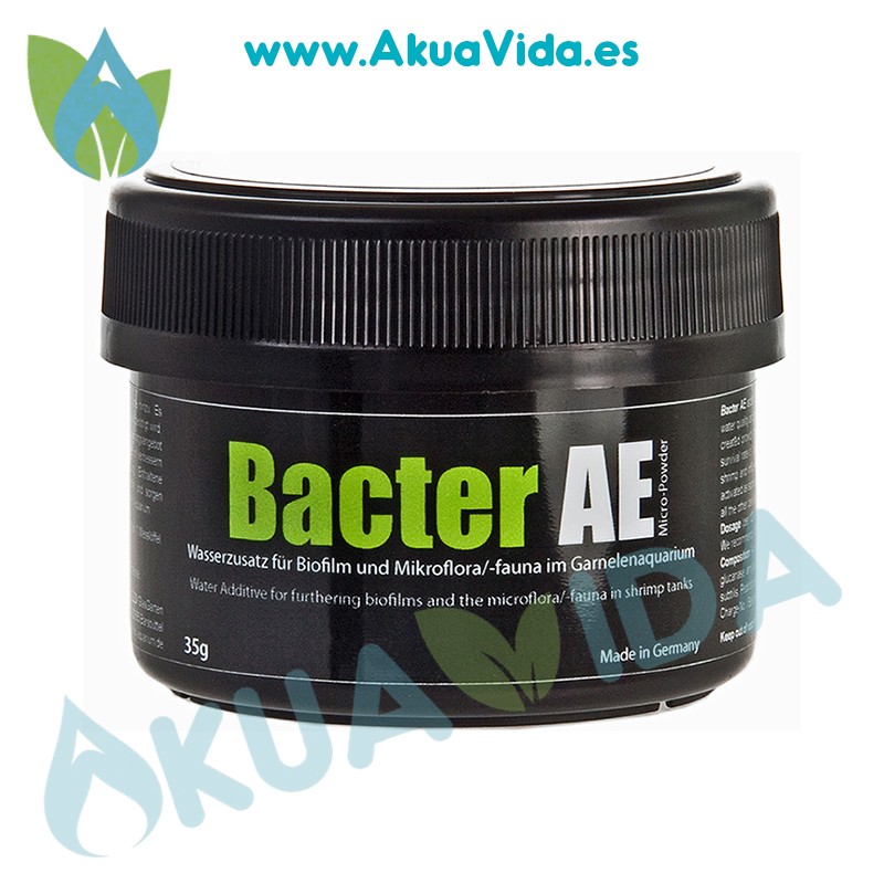 GlasGarten Bacter AE agrega a su acuario microorganismos importantes , aminoácidos y enzimas. Mejora la calidad del agua y mejora el desarrollo de la biopelícula , que requieren las gambas y especialmente sus crias. A través de estas biopelículas constantemente se asegura el suministro de alimentos ricos en proteínas , que en particular, aumenta la tasa de supervivencia de las crias y permite un desarrollo saludable.