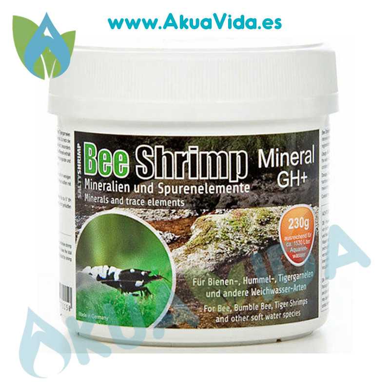Salty Shrimp Bee Shrimp GH+ ha sido especialmente desarrollado para el mantenimiento y la cria de las gambas variedades bee, bumblebee y tiger en el acuario mineralizando el agua.