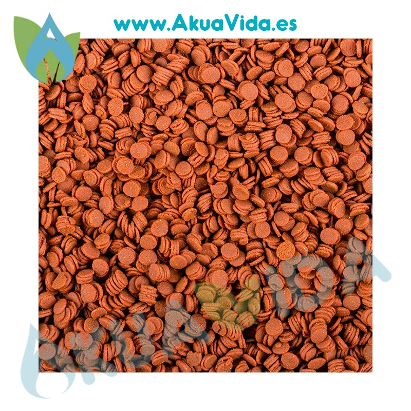 Pienso compuesto completo para peces ornamentales. Ingredientes: pescados y subproductos de pescado (la harina de arenques), moluscos y crustáceos (incluyendo harina de krill 8%, harina de calanus 1,7%), insectos (harina de larvas de insectos 5%), extractos de proteínas vegetales, algas, subproductos de origen vegetal (incluyendo ajo 4,5%, extracto de pimiento rojo 3 800 mg/kg), frutas, cereales, levadura (incluyendo Beta-1,3/1,6-Glucan 1 000 mg/kg), aceites y grasas, sustancias minerales. Aditivos (por kg): Vitaminas, provitaminas y sustancias químicamente definidas de efecto análogo: vit. A 39 000 IU, vit. D3 2 300 IU, vit. E 150 mg, vit. C 570 mg. Oligoelementos o compuestos de oligoelementos: E1 (Fe) 40,6 mg, E6 (Zn) 11,3 mg, E5 (Mn) 8,4 mg, E4 (Cu) 2,0 mg, E2 (I) 0,24 mg, E8 (Se) 0,24 mg, E7 (Mo) 0,05 mg. Colorantes: astaxantín 120 mg. Antioxidantes. Componentes analíticos: proteína bruta 41,0%, aceites y grasas brutos 9,0%, fibras brutas 3,0%, humedad* 10,5%.